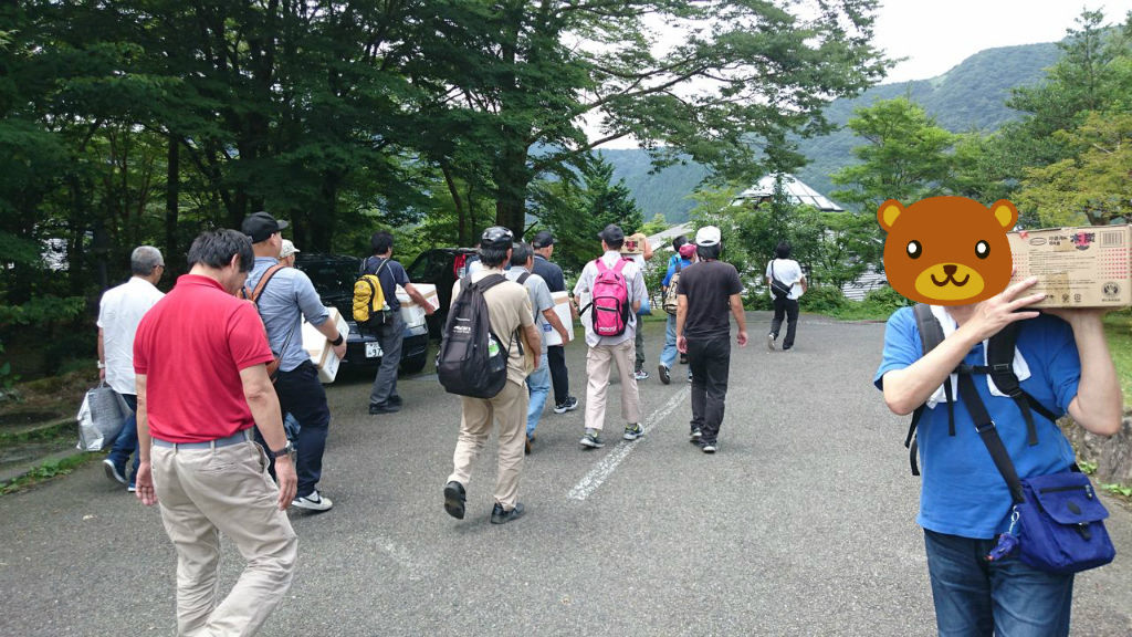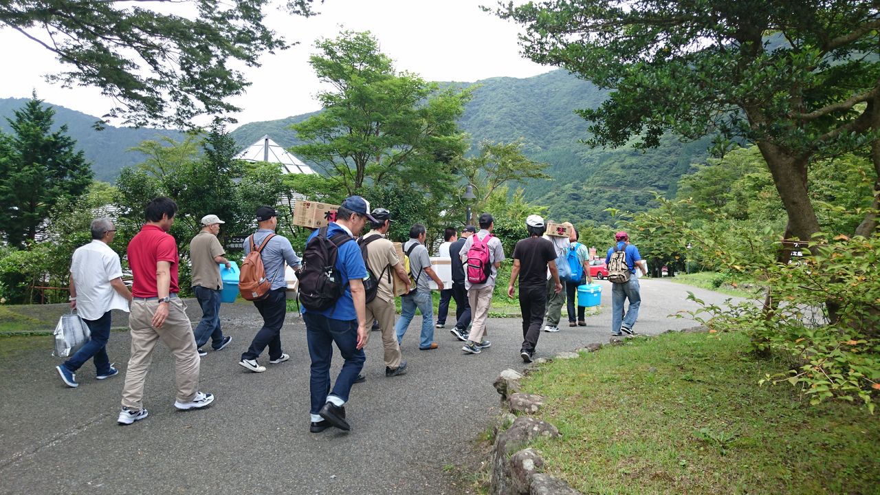 到着後はみんなワイワイで荷物運び